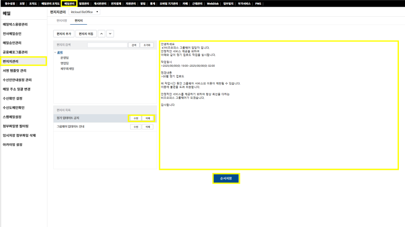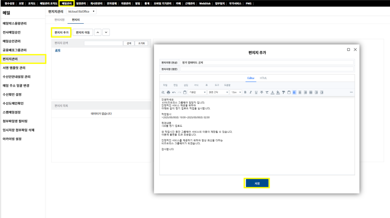 메일 편지지 기능으로 반복 작성 업무를 줄이고, 조직 전체의 메시지를 통일하여 긴급 공지에도 빠르게 대응할 수 있도록 지원하기에