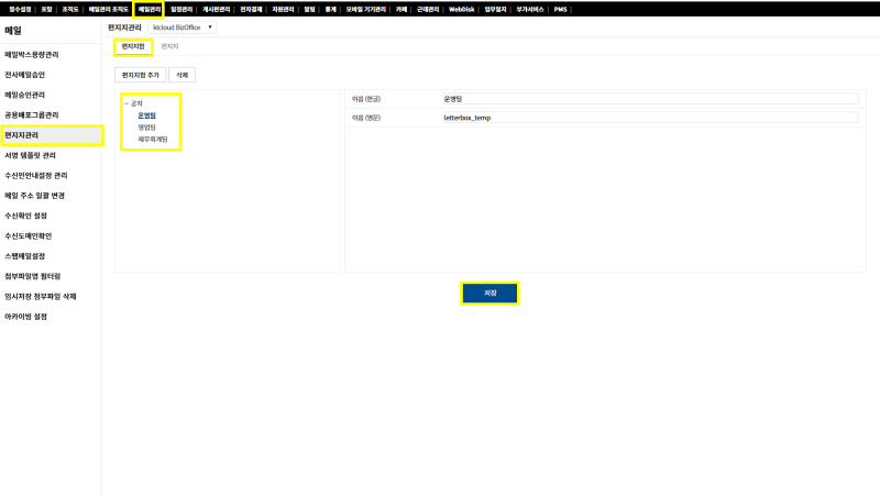 5. 편지지함에서 팀별로 또는 프로젝트별로 편지지를 생성하여 관리할 수 있습니다.